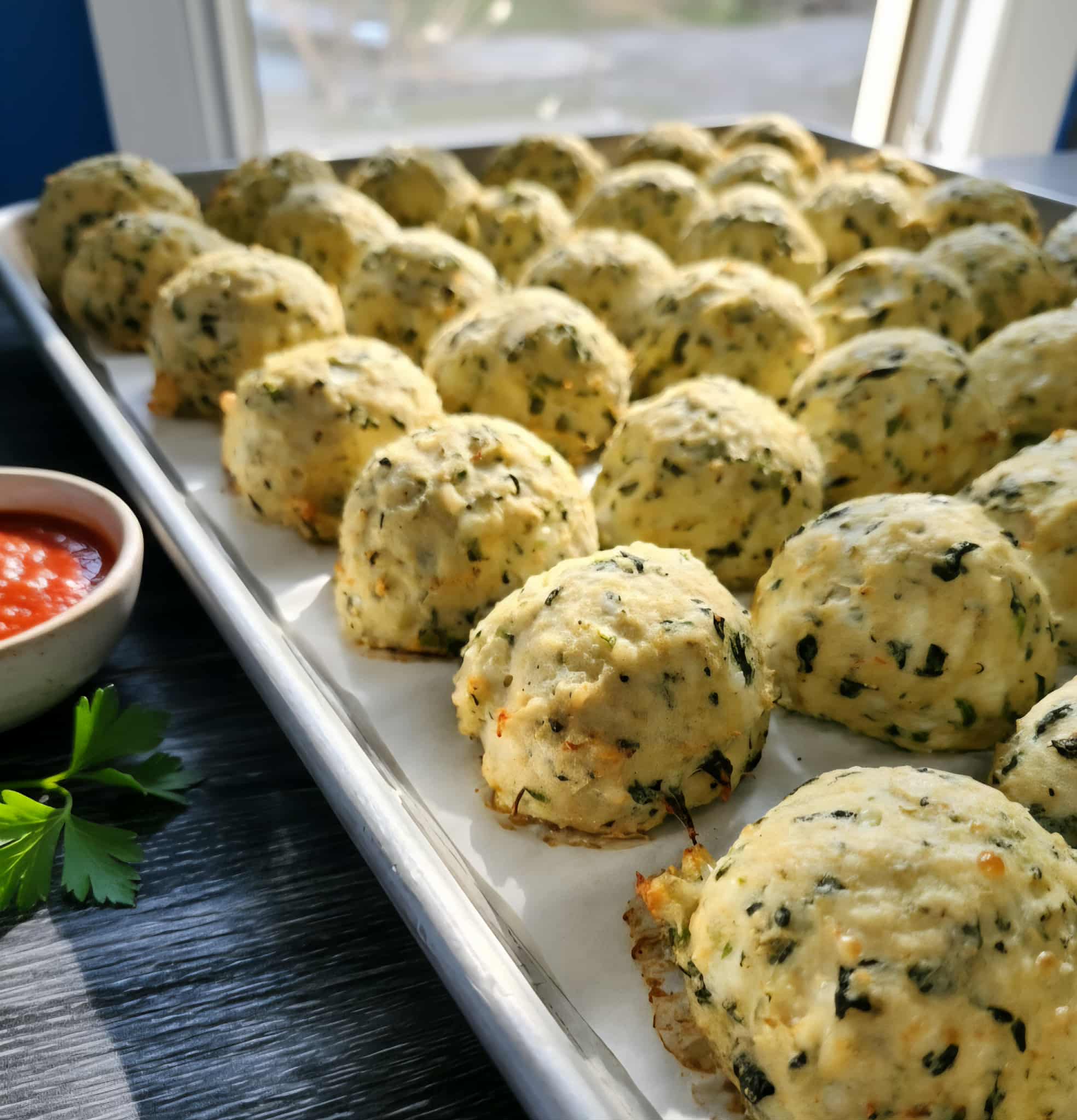Boulettes de volaille, épinards et parmesan servies dans une sauce tomates maison !