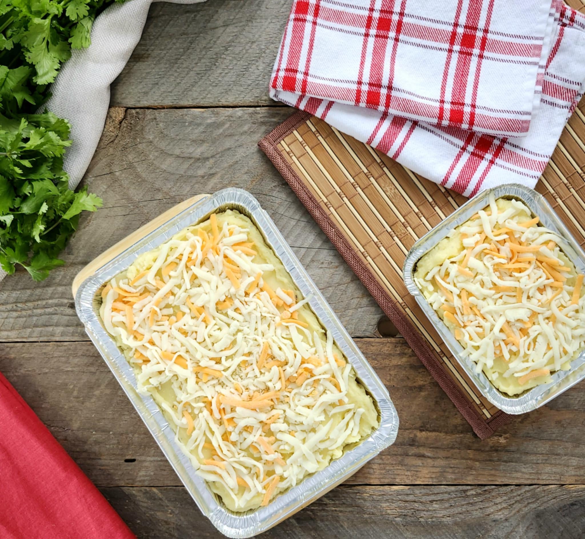 Un classique que nous avons pimpé ! Du porc haché cuit avec de délicieux morceaux de bacon, et une délicieuse et oncuteuse purée de pommes de terre, faite de pommes de terre jaunes, le tout recouvert d'un mélange de fromage cheddar et mozzarella. Toute la famille en sera ravie !!!