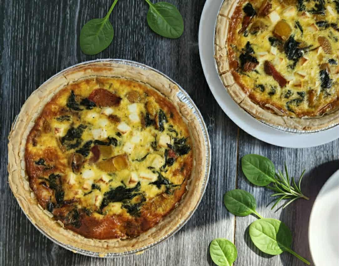 Une délicieuse quiche cuisinée avec des poivrons du Québec, des épinards frais et du fromage feta.